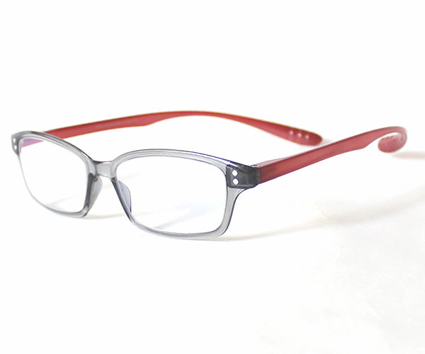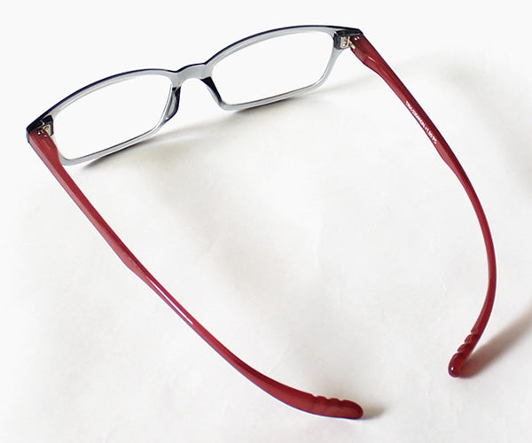 テンプル部分はバネ式のため首に掛けやすく、フィット感があります。フレームは、お顔をすっきりと見せてくれるスタンダードなスクエアタイプで、どなたにも似合いやすいデザインです。程良い大きさで本を読む時もフレームが視界を邪魔せず快適です。ポリカーボネート製かつ軽量設計により軽やかな掛け心地に。